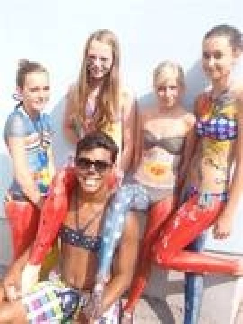 Sie machten einen Besuch im Städtischen Kindergarten, wo sie großes Aufsehen erregten. Da es ein sehr heißer Sommertag war, ging es danach ins Schwimmbad. Vor dem Untertauchen im kühlen Nass musste die Bemalung leider heruntergewaschen werden!