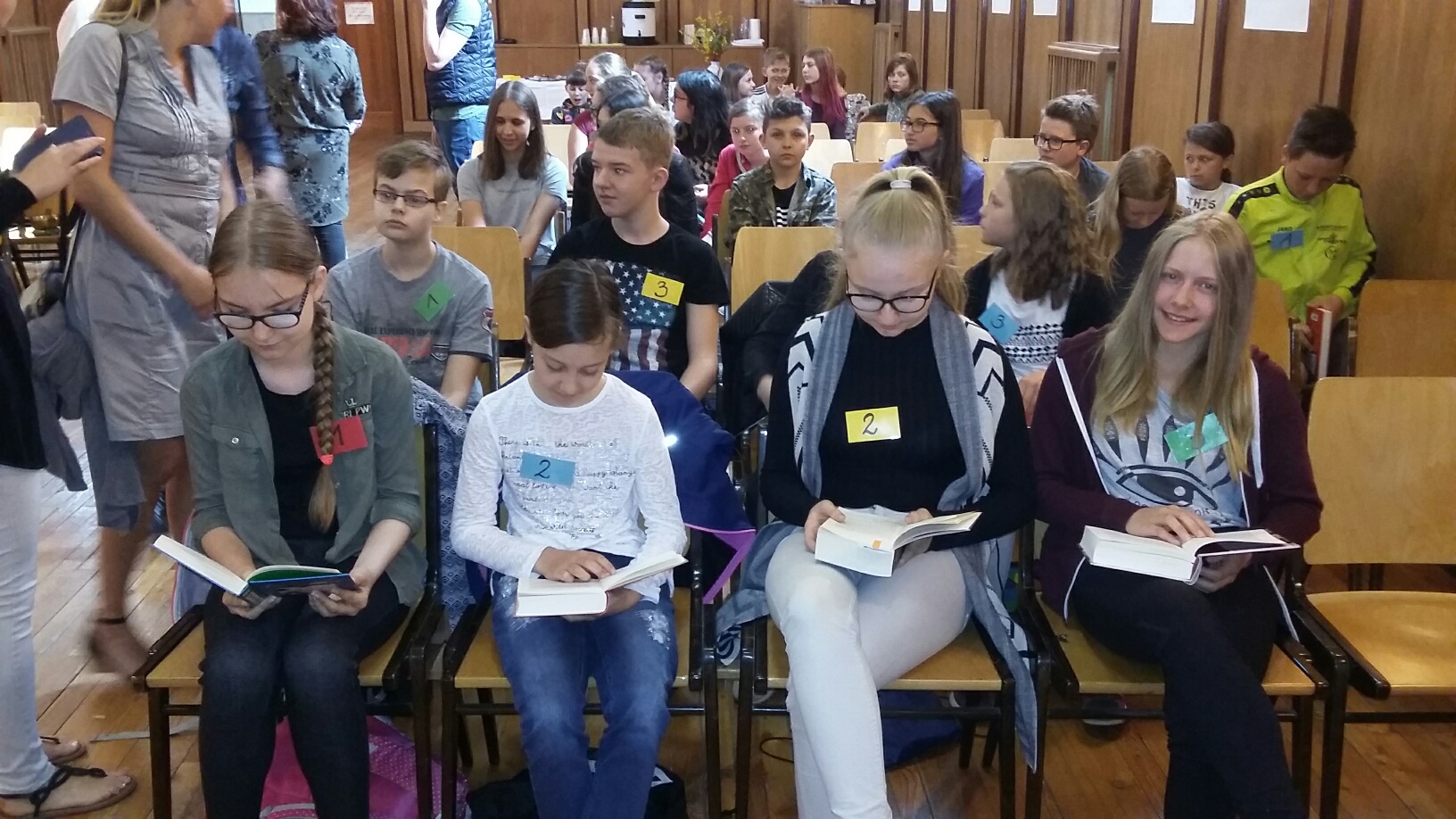 Im ersten Durchgang des Wettbewerbes galt es für die zwölf Schüler in jeweils drei Minuten einen vorbereiteten Text aus einem Kinder- oder Jugendbuch vorzulesen, wobei von der Jury verschiedene Kriterien wie Lesetechnik, Interpretation und Textauswahl bewertet wurden.