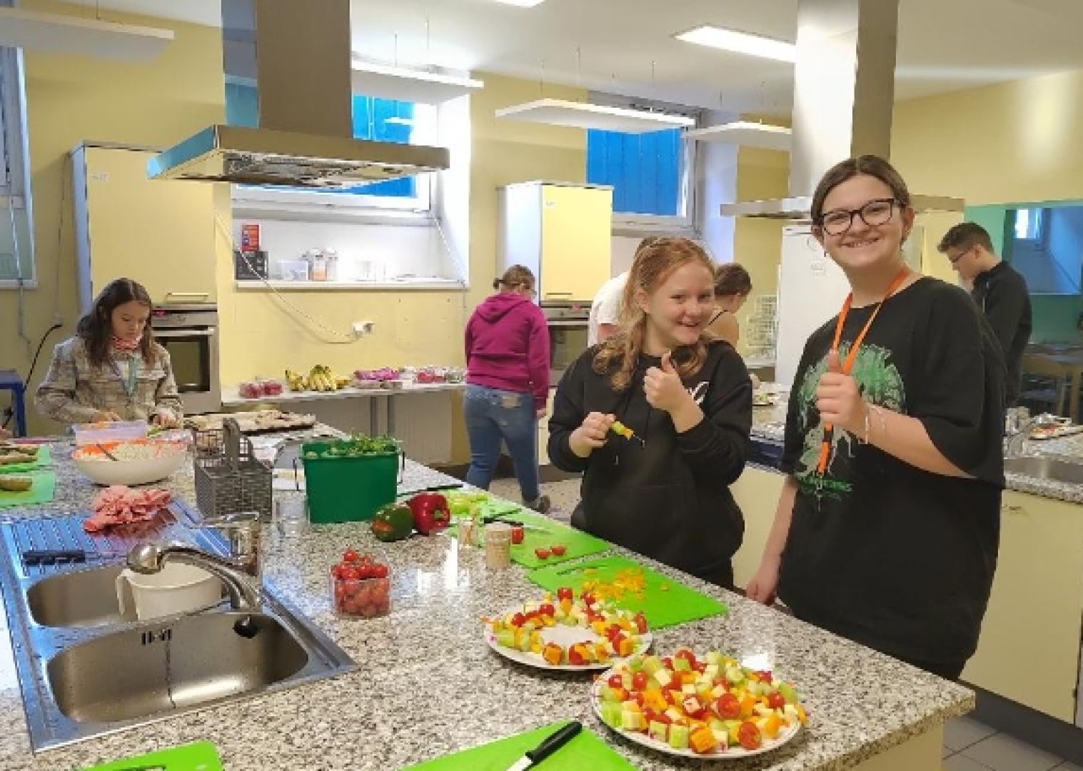 Alle Schülerinnen und Schüler konnten sich einbringen und erlernten dabei den Umgang mit gesunden Lebensmitteln. Wie auf den glücklichen Gesichtern zu sehen ist, waren die Klassen hellauf begeistert und mit großem Engagement dabei.