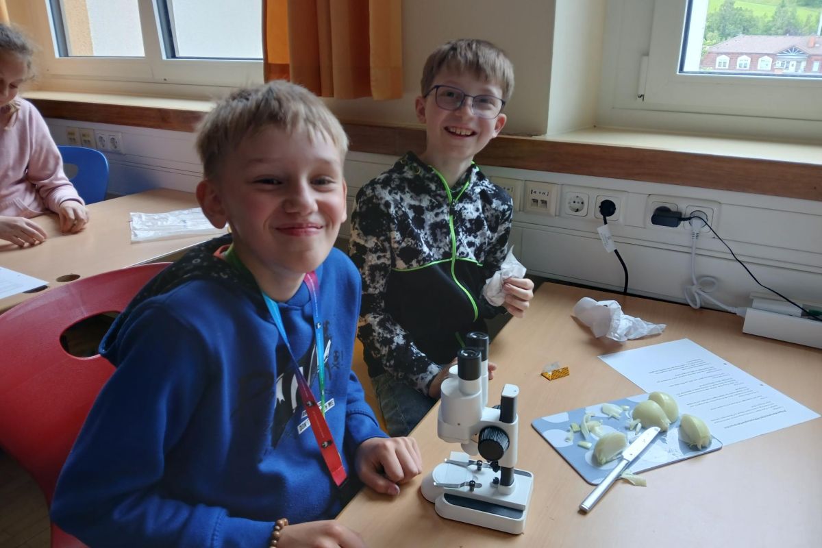 Unsere 1. Klasse durfte nicht nur einen Mikroskopierführerschein machen, sondern auch selbst Präparate herstellen – und das mit großem Eifer.