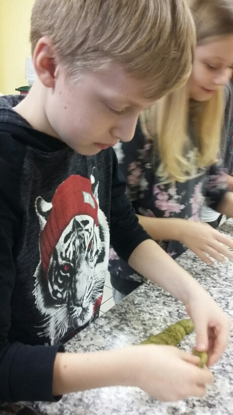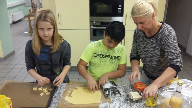 Am zweiten Tag des Projekts wurden in der Schulküche, mit Unterstützung von Frau Stücklschweiger und den Damen der Familie Kainbrecht, Kekse gebacken. Für einige Kinder waren der Umgang mit Küchengeräten und das Backen eine neue Erfahrung, alle waren aber mit voller Begeisterung dabei. Neben dem Erleben von Tradition, mussten die Schülerinnen und Schüler aber auch ihre mathematischen Kenntnisse und ihr Leseverständnis anwenden, galt es doch die einzelnen Schritte der Keksrezepten zu verstehen und die Maßangaben gegebenenfalls umzuwandeln.