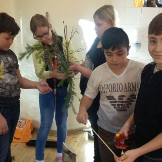 In der ersten Projektphase konnten die Schülerinnen und Schüler ihrer Kreativität freien Lauf lassen und in Gruppen, verschiedene vorweihnachtliche Dekorationsgegenstände herstellen. Die einzelnen Bastelstationen konnten von den Kindern frei gewählt werden und auch ein Arbeitsplatzwechsel war jederzeit erlaubt. So hatte die Klasse die Möglichkeit, mit Mitschülern und Mitschülerinnen ins Gespräch zu kommen, mit denen sie im regulären Unterrichtsalltag nicht allzu viel Kontakt haben. Die dadurch ausgelösten gruppendynamischen Prozesse schulten einerseits die soziale Kompetenz, andererseits entstanden auch neue Freundschaften innerhalb der Schülerinnen und Schüler.