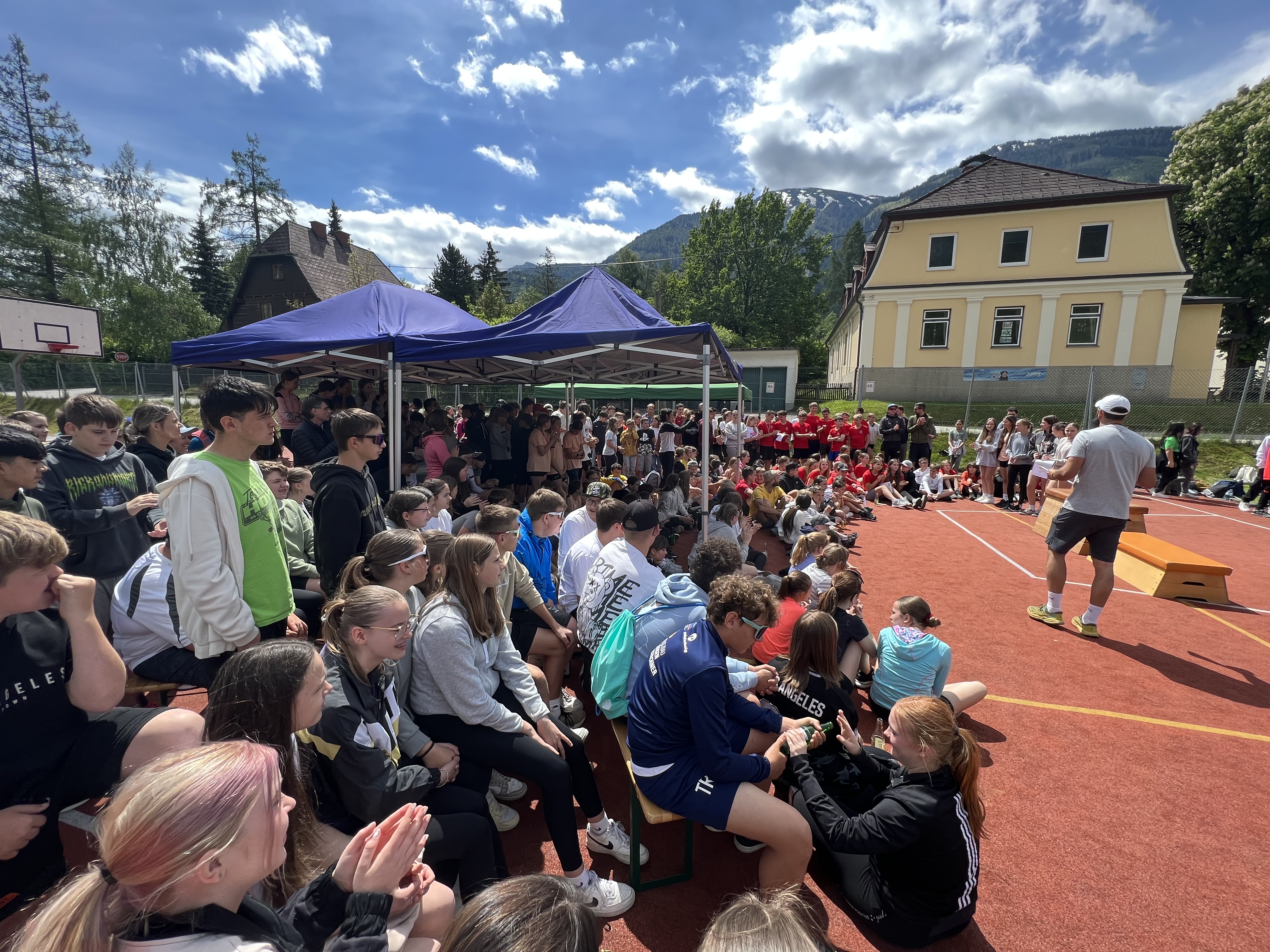Ein Novum in diesem Jahr war, dass mit dem BG/BRG Stainach und dem Stiftsgymnasium Admont auch die beiden großen Gymnasien unseres Bezirkes vertreten waren. Bei perfekten Witterungsverhältnissen kämpften insgesamt 168 Schülerinnen und Schüler um die begehrten Pokale, Urkunden und damit einhergehenden Podestplätze. Alle Teilnehmerinnen und Teilnehmer wurden auf eine Jause zur zwischenzeitlichen Stärkung eingeladen. Es war beeindruckend, welche Leistungen die Schülerinnen und Schüler beim Sprint, Schlagball und Weitsprung vollbrachten. Gleichermaßen schön anzusehen war die große Freude und der Teamspirit bei der Durchführung der Wettkämpfe, sowie der anschließenden Siegerehrung. Das sportbegeisterte Team der Mittelschule Rottenmann bedankt sich bei allen Helfern und Sponsoren und freut sich auf den Leichtathletik Bezirkswettbewerb im nächsten Schuljahr.