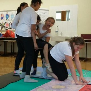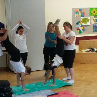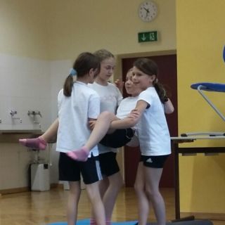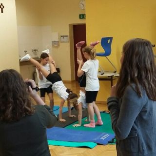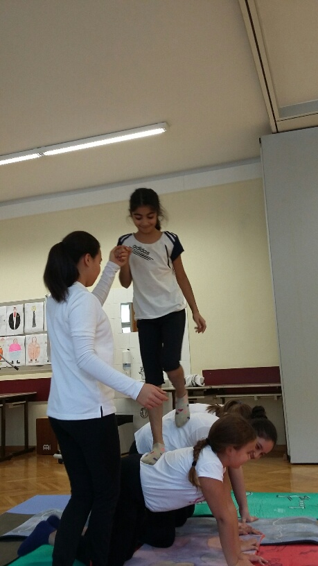 Unter der Leitung von Anna Scherz stellten die 1. Klassen ein selbstchoreografiertes Akrobatik-Programm zusammen.