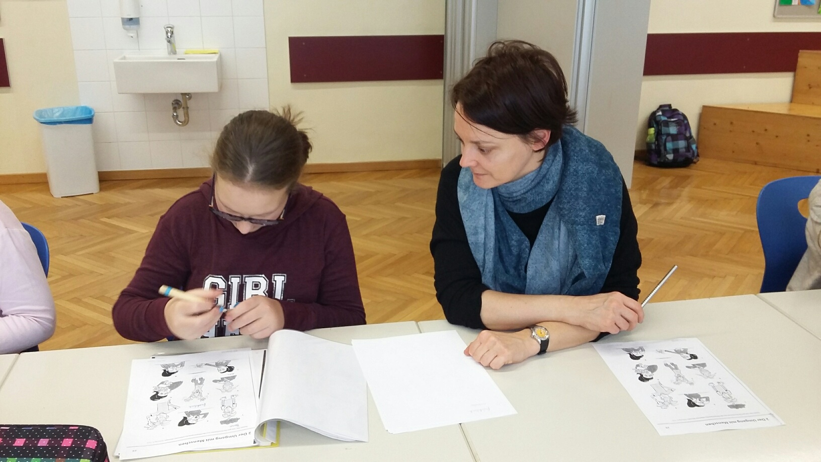 Während am ersten Tag die Erarbeitung des Begriffs „Benehmen“ im Fokus stand, gestaltete den zweiten der drei Projekttage zum großen Themenkreis „Gutes Benehmen“ Dipl. Päd. Karin Matzer. Er handelte von all jenen Dingen, die den so wichtigen ersten Eindruck ausmachen: Kleidung, Gang, Haltung, Körpersprache, Mimik sowie persönliche Hygiene und Verhalten bei Tisch.