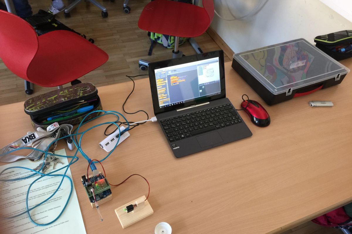 Mit Hilfe der Programmiersprache Scratch konnten die SchülerInnen der 3a, angeleitet durch einen großartigen Dir. Leo Köberl, die ersten Erfahrungen mit Mess-, Steuerungs- und Regelungstechnik machen. Ein wirklich interessantes und zukunftsorientiertes Fachgebiet.
