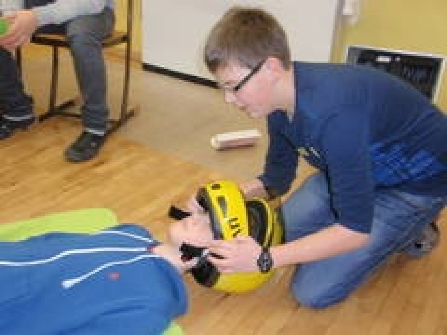 Die beiden 4. Klassen lernten die Grundkompetenzen der Ersten Hilfe. Vom Notruf bis zur richtigen Lagerung, von der Herzdruckmassage bis zum Druckverband uvm. wurde praktisch geübt. Das einwöchige Projekt schloss mit einer theoretischen und praktischen Prüfung ab.