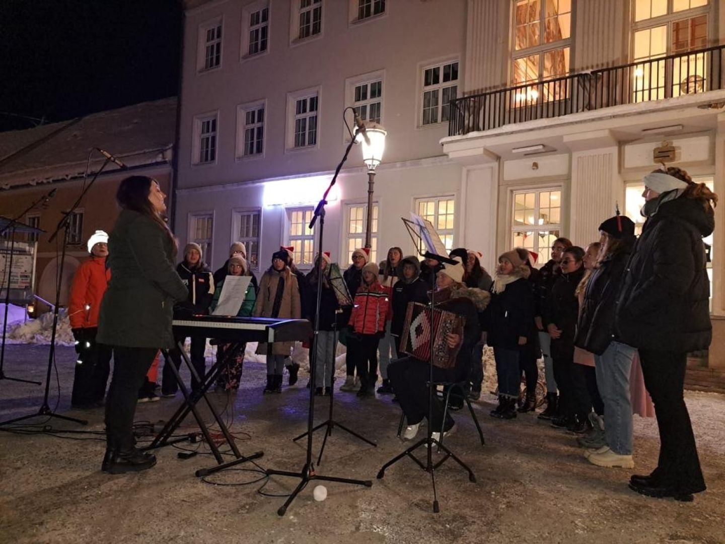 Der Chor unserer Schule, unter der Leitung von Patricia Plank, begeisterte das Publikum mit einem eindrucksvollen Repertoire. Von traditionellen Weihnachtsliedern bis hin zu modernen Klängen zeigten die Schülerinnen und Schüler ihr musikalisches Können und verliehen der Krippeneröffnung eine besondere Note.