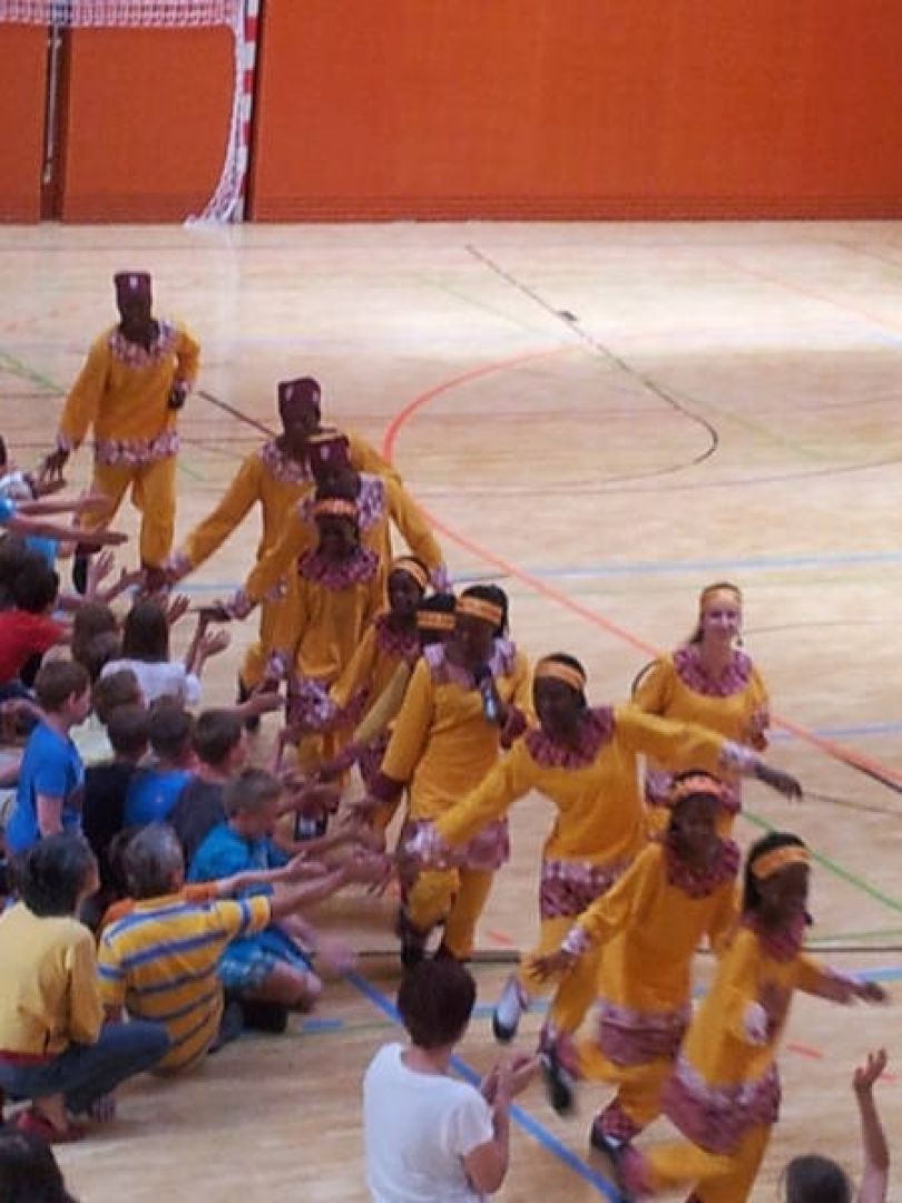 Wir wurden aufgrund unserer längeren Anreise als VIP-Gäste empfangen und erhielten eine CD als Geschenk. Die Kinder sangen, tanzten und trommelten.