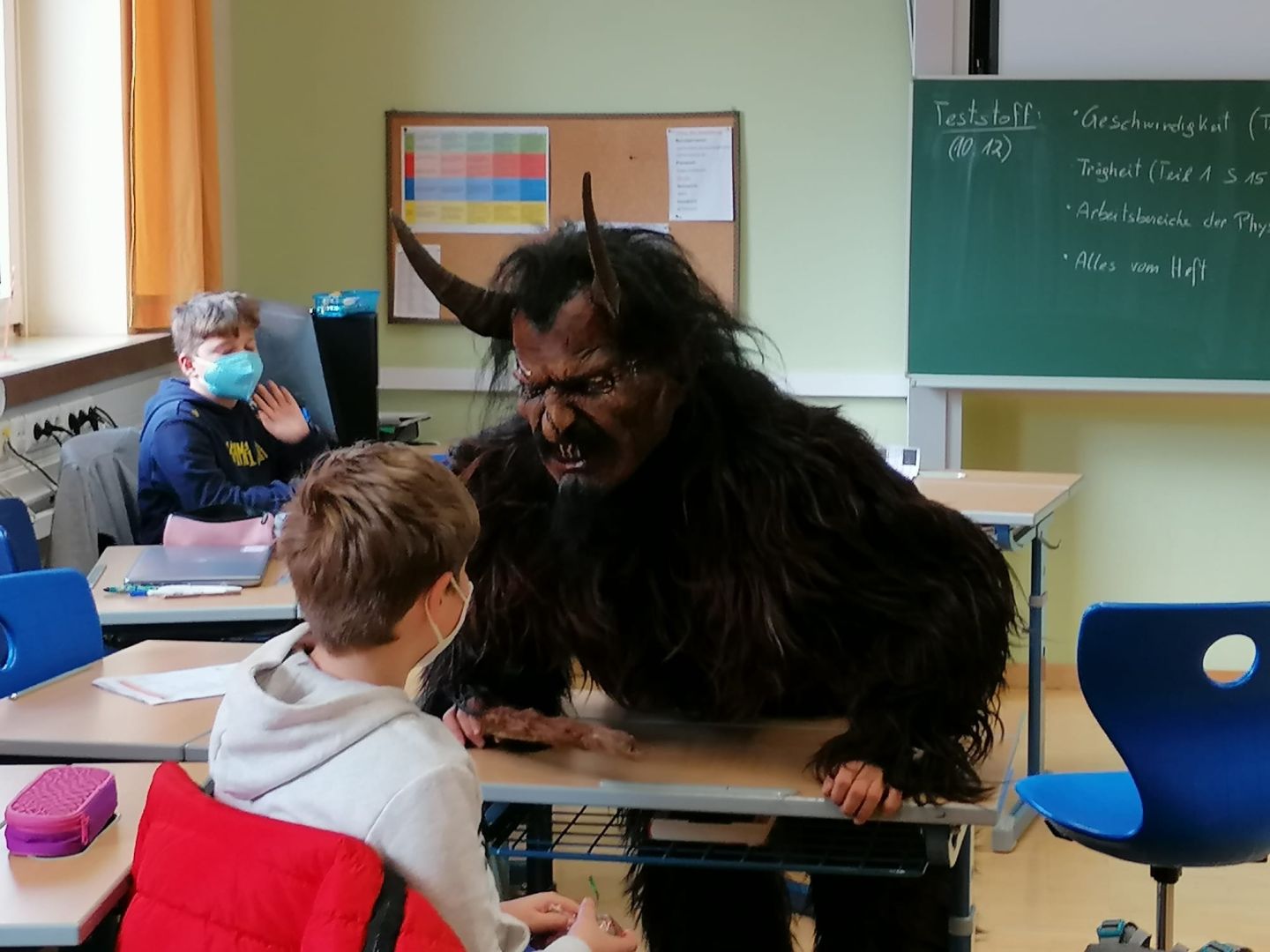 Der Krampus war zu Besuch und kontrollierte, ob in der Schule alle brav sind.