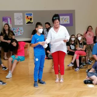 Unsere Schülerinnen und Schüler sammelten das Schuljahr über fleißig Bälle in ihren Soko-Röhren, belohnt wurden ua. herausragendes soziales Verhalten, guter Umgang und respektvolles Miteinander der Schülerinnen und Schüler. Es wurde gerätselt und die Spannung stieg, bis unsere Frau Direktorin Marion Reitterer die ersten 3 Plätze verkündete und die Gutscheine an die Klassensprecher übergab. Den 3. Platz ergatterte die 1b-Klasse und hat sich für ihre Leistung ein Eis verdient! Den 2. Platz schaffte die 3a-Klasse - als Preis erhielten sie ein Frühstück und anschließend einen Vormittag im Schwimmbad! Der verdiente 1. Platz, ein freier Schultag, wurde der 1a-Klasse überreicht. Die Begeisterung war groß und wir freuen uns auf die Weiterführung des SOKO im nächsten Schuljahr! Wir wünschen allen Schülerinnen, Schülern und Lehrpersonen erholsame Sommerferien!