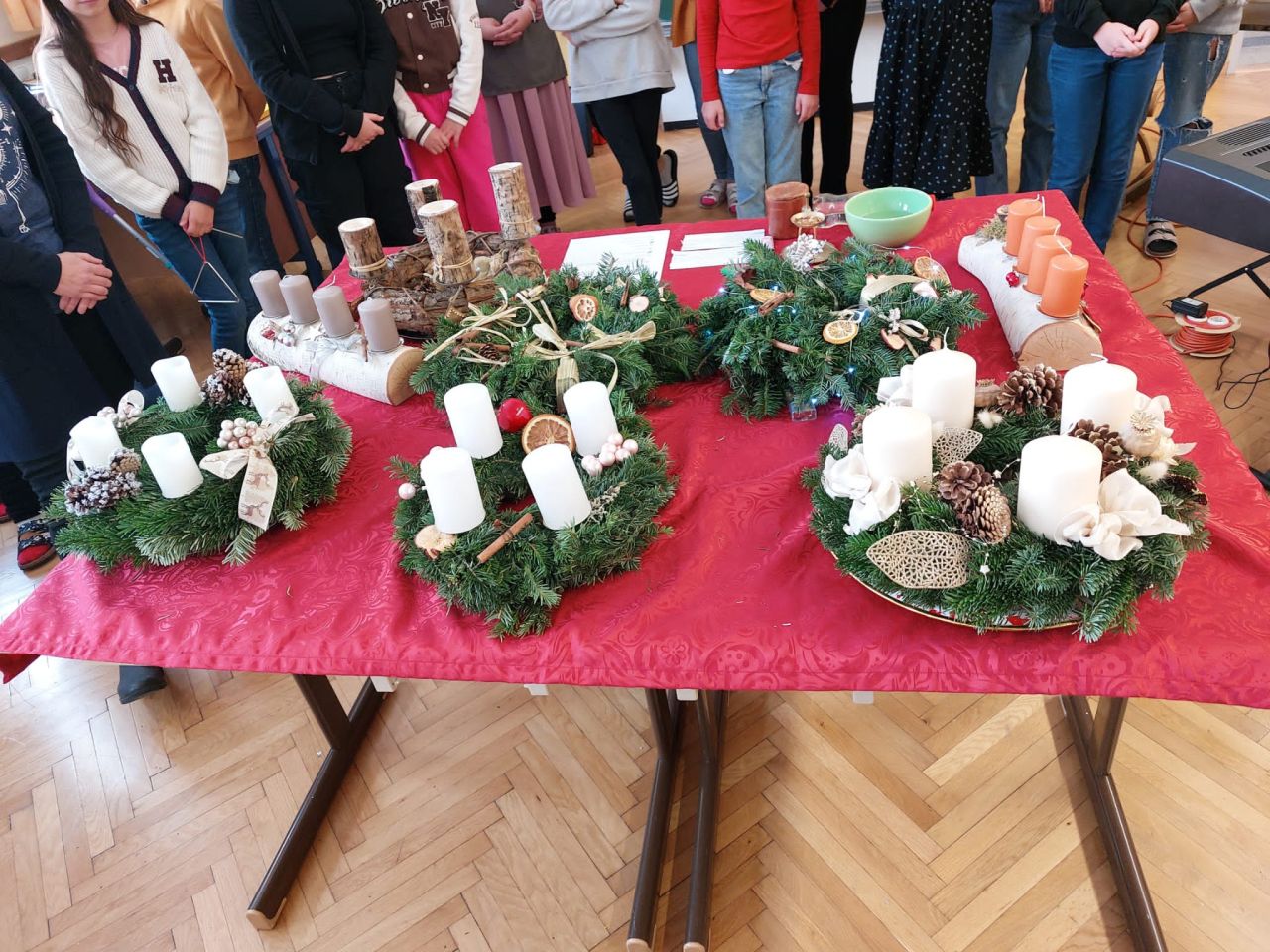 Höhepunkt der Veranstaltung war die Weihe der Adventskränze der Klassen. In einem feierlichen Ritual wurden die Kränze gesegnet, um den Schülerinnen und Schülern sowie den Lehrkräften eine besondere Einstimmung auf die Adventszeit zu ermöglichen.