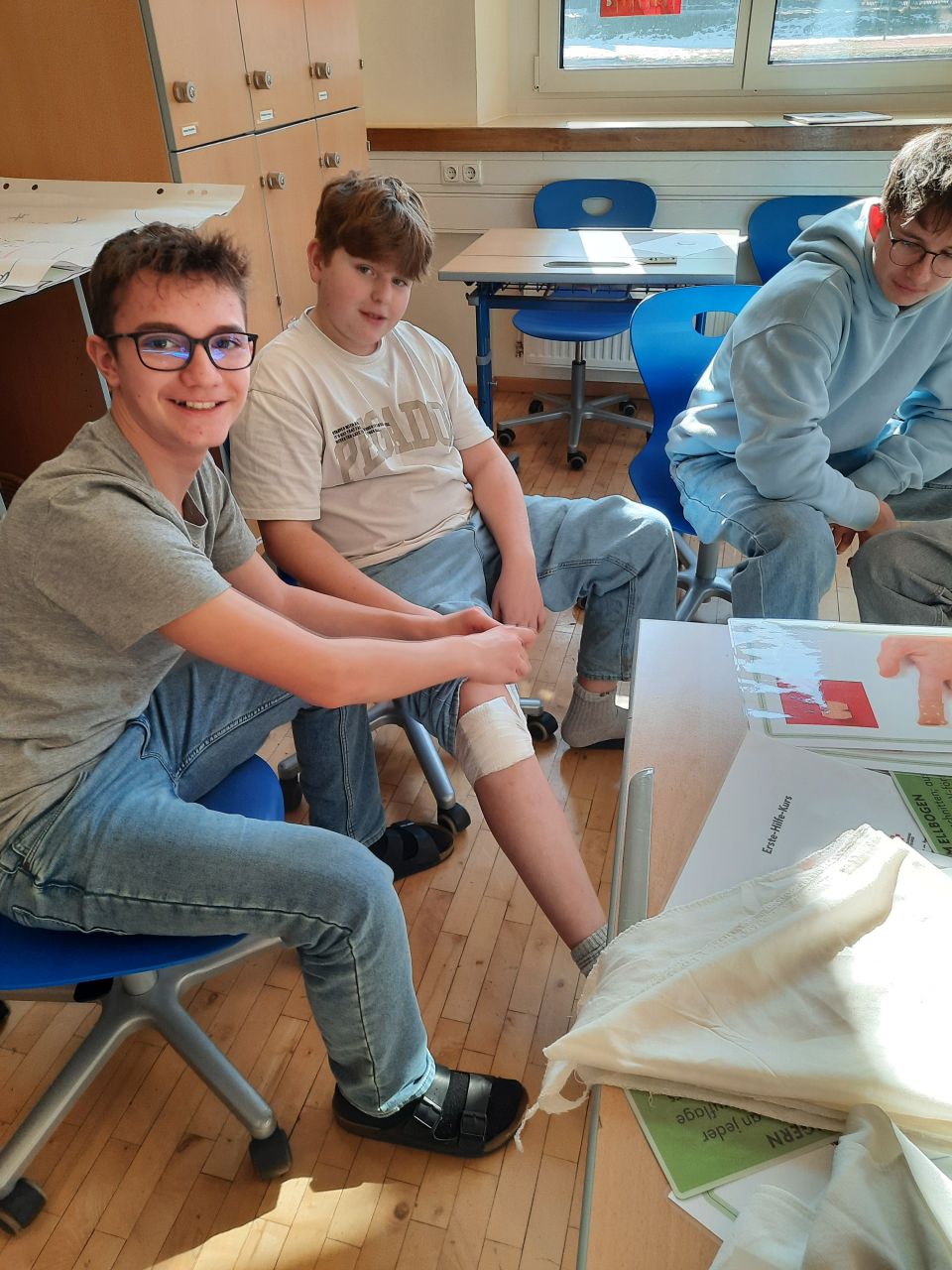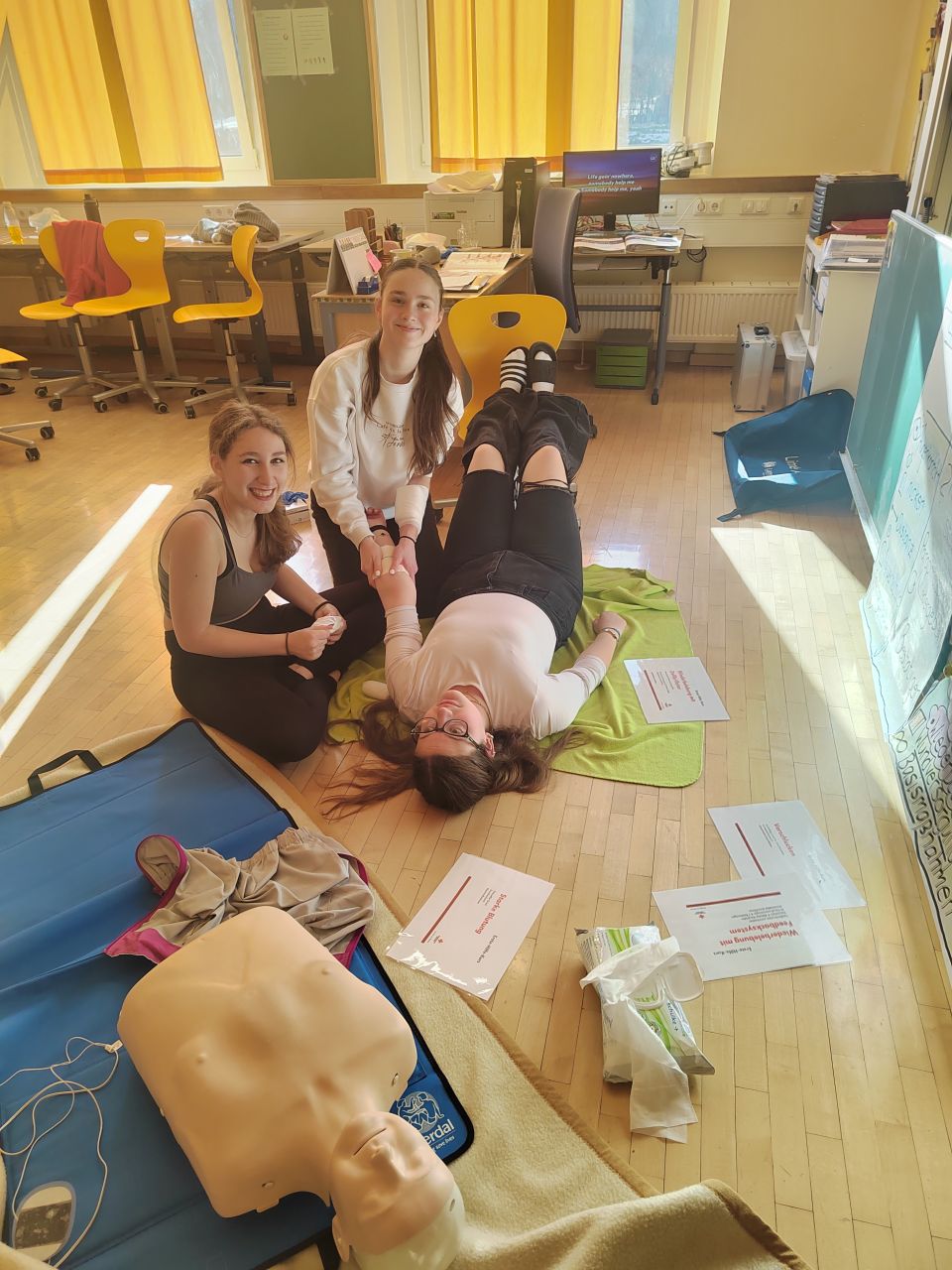 „Erste Hilfe ist einfach - Erste Hife kann jeder!“ Unter diesem Motto absolvierten die beiden 4. Klassen im Rahmen der Projektwoche einen 16 Stunden Erste-Hilfe-Kurs. Nach mehreren Jahren Pause fand der Kurs endlich wieder statt und er wird auch für den Führerschein anerkannt!