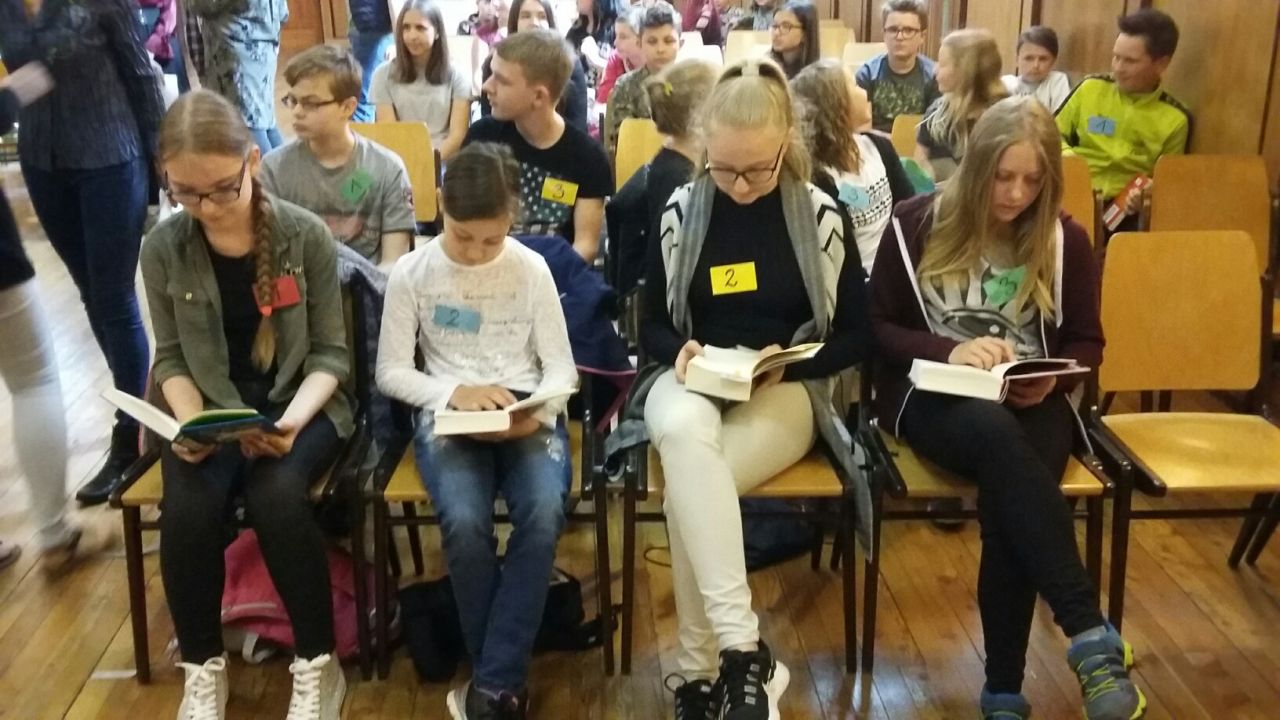 Im ersten Durchgang des Wettbewerbes galt es für die zwölf Schüler in jeweils drei Minuten einen vorbereiteten Text aus einem Kinder- oder Jugendbuch vorzulesen, wobei von der Jury verschiedene Kriterien wie Lesetechnik, Interpretation und Textauswahl bewertet wurden.