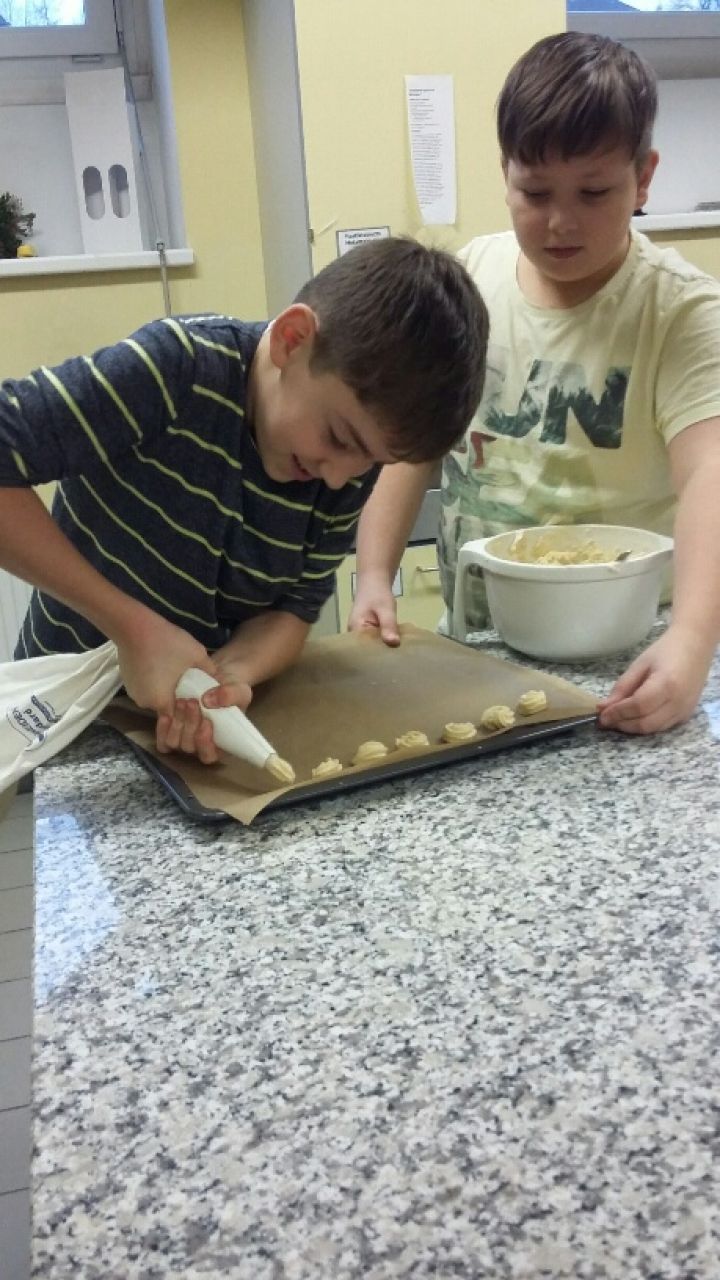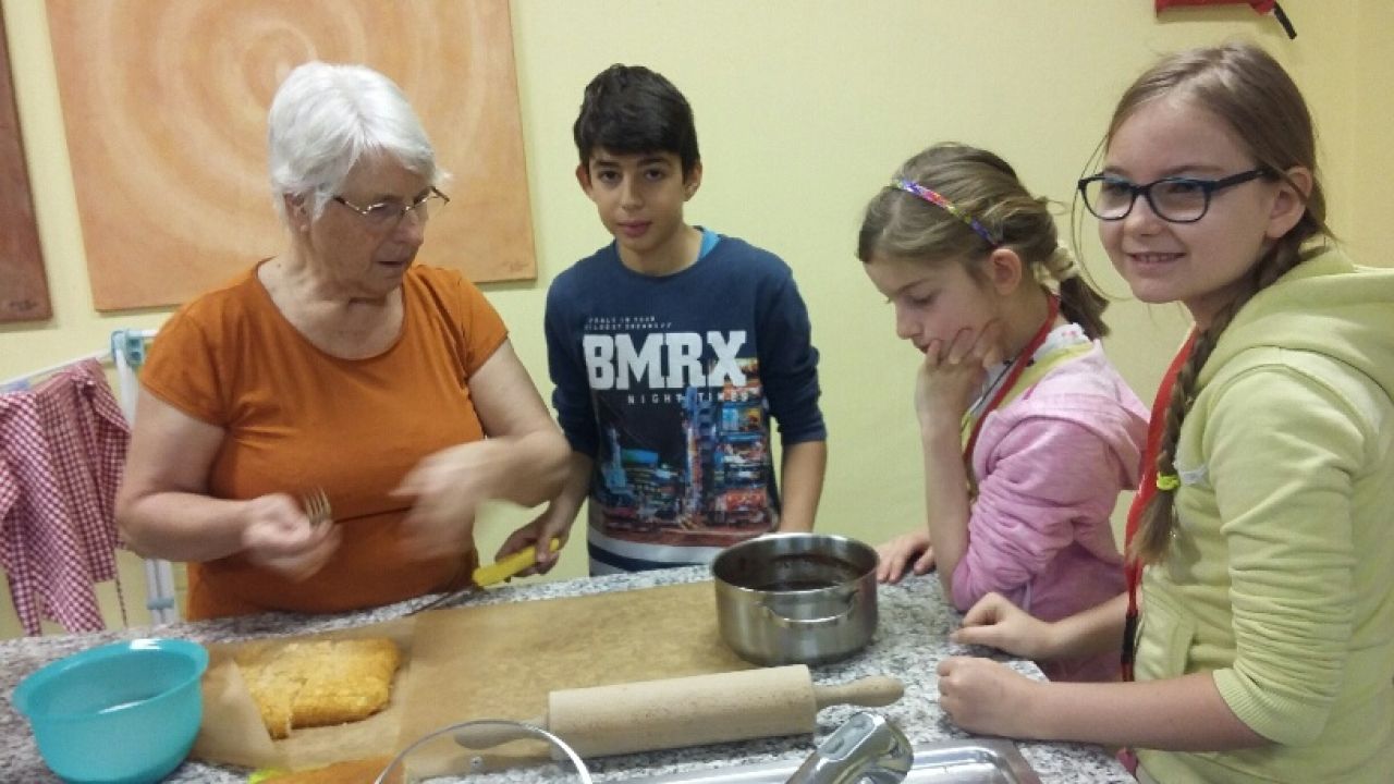Am zweiten Tag des Projekts wurden in der Schulküche, mit Unterstützung von Frau Stücklschweiger und den Damen der Familie Kainbrecht, Kekse gebacken. Für einige Kinder waren der Umgang mit Küchengeräten und das Backen eine neue Erfahrung, alle waren aber mit voller Begeisterung dabei. Neben dem Erleben von Tradition, mussten die Schülerinnen und Schüler aber auch ihre mathematischen Kenntnisse und ihr Leseverständnis anwenden, galt es doch die einzelnen Schritte der Keksrezepten zu verstehen und die Maßangaben gegebenenfalls umzuwandeln.