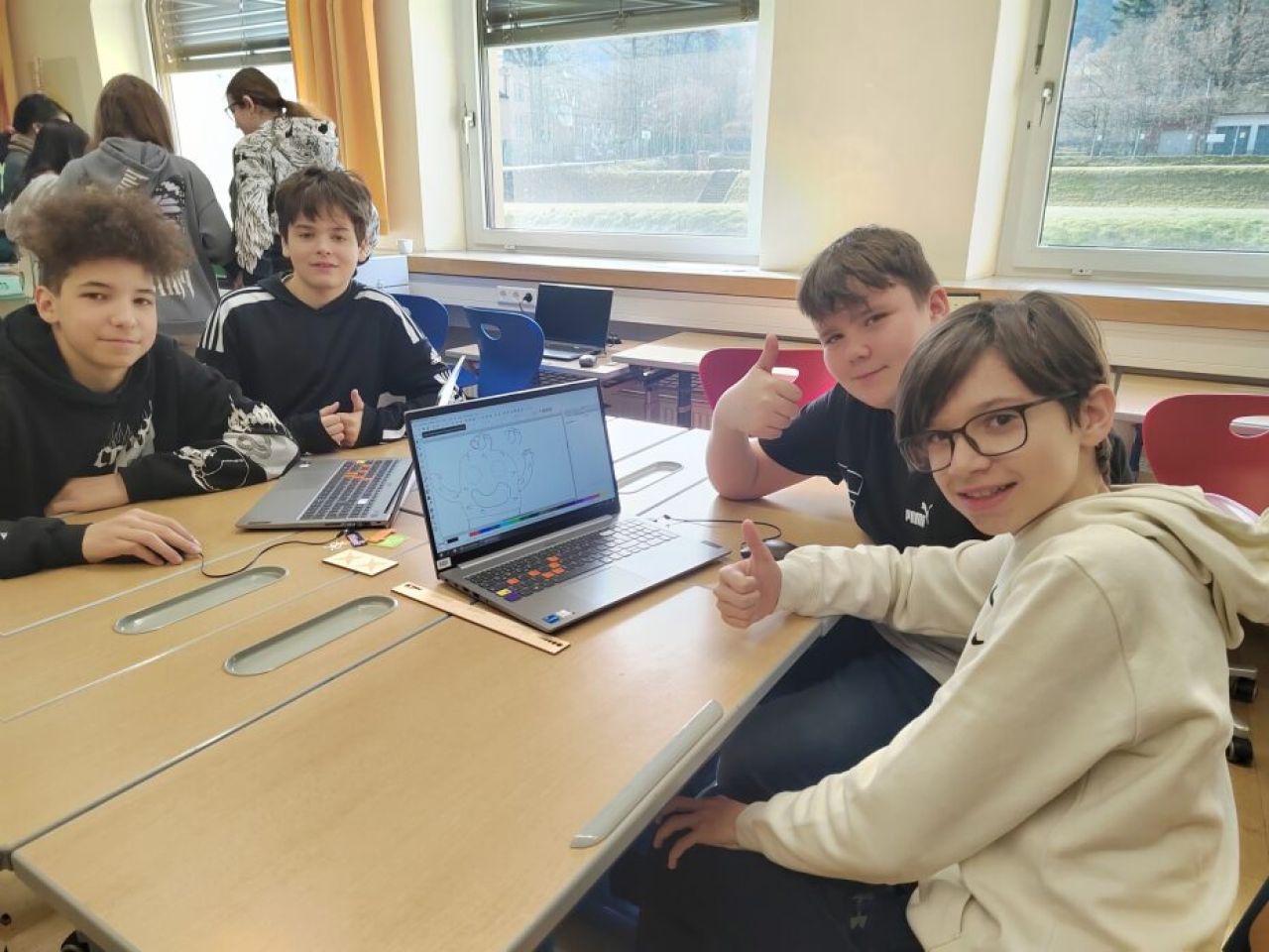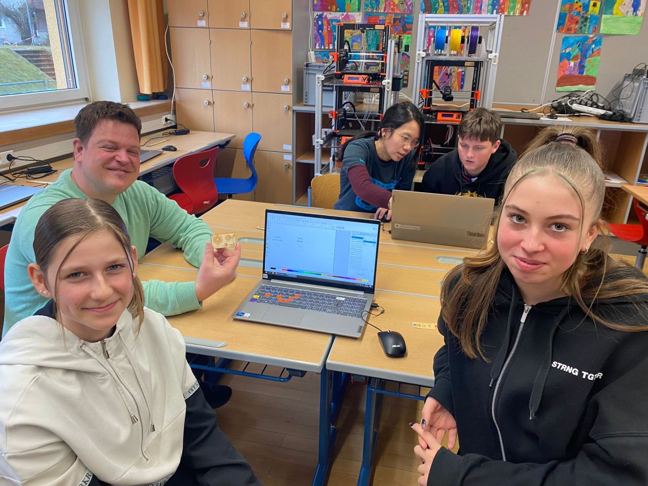 Im Rahmen von Workshops konnten unsere SchülerInnen digitale Produktionstechniken ausprobieren und technische Umsetzungsmöglichkeiten kennenlernen: Sie waren mit großem Elan bei der Sache - und dabei entstanden viele kreative und selbst entworfene Schlüsselanhänger und Schilder.