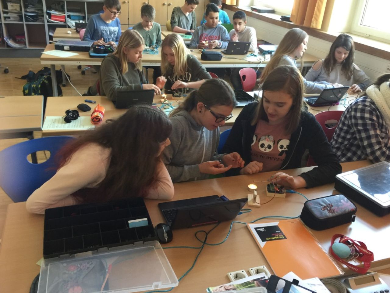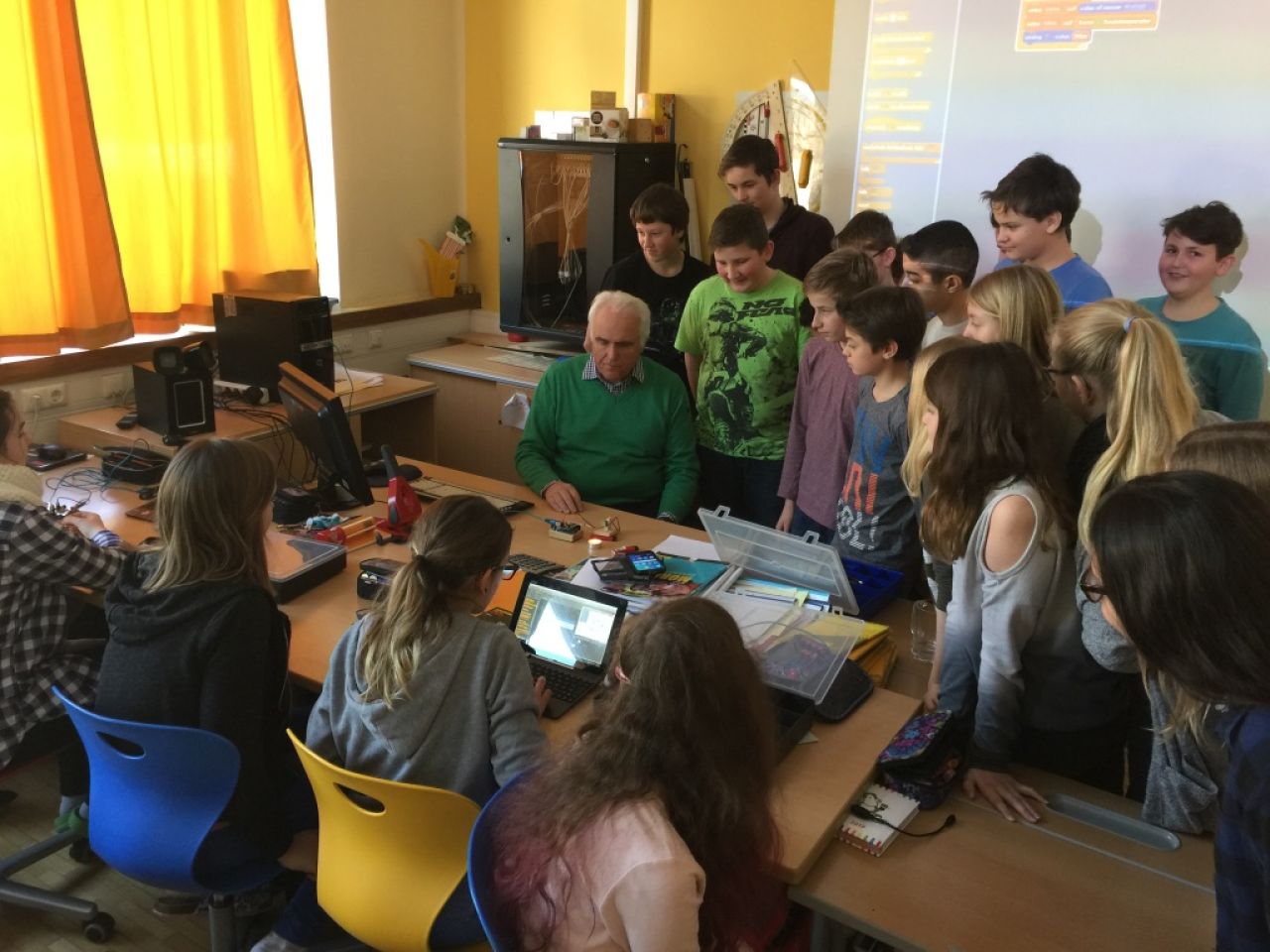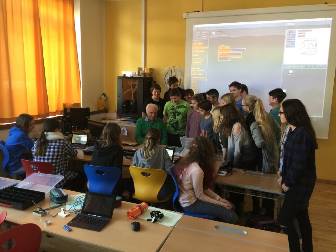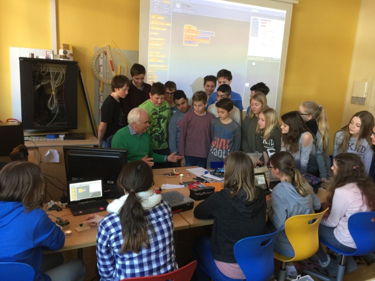 Mit Hilfe der Programmiersprache Scratch konnten die SchülerInnen der 3a, angeleitet durch einen großartigen Dir. Leo Köberl, die ersten Erfahrungen mit Mess-, Steuerungs- und Regelungstechnik machen. Ein wirklich interessantes und zukunftsorientiertes Fachgebiet.