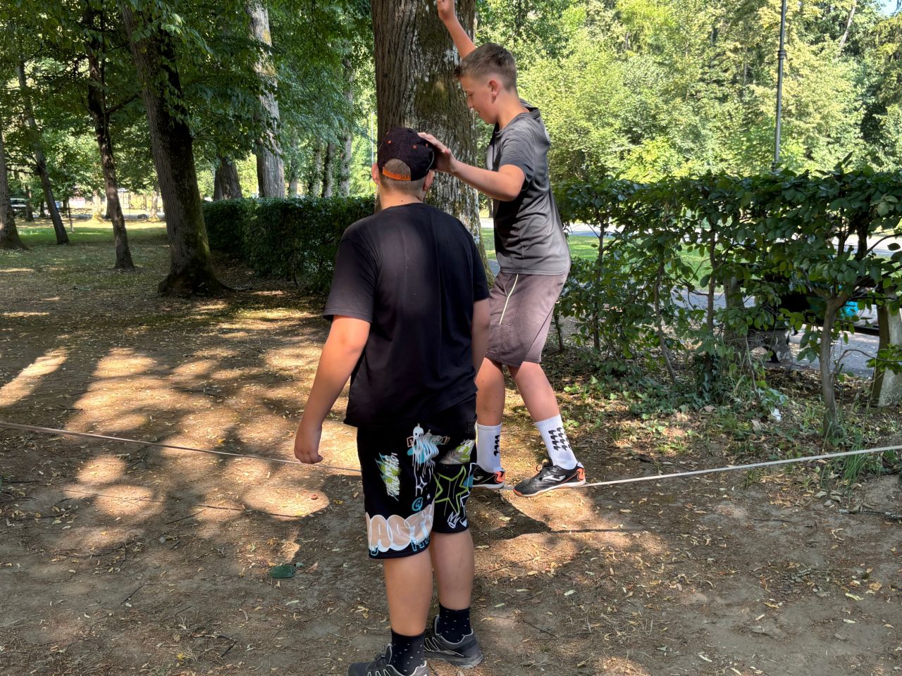 Die 3. Klassen der MS Rottenmann verbrachten ihre letzte Schulwoche im JUFA Leibnitz. Zusätzlich zum täglichen Besuch im Leibnitzer Freibad konnten die S/S an zahlreichen sportlichen Aktivitäten teilnehmen – Slacklinen, Bouldern, Mini-Golf, Parcouring, usw.