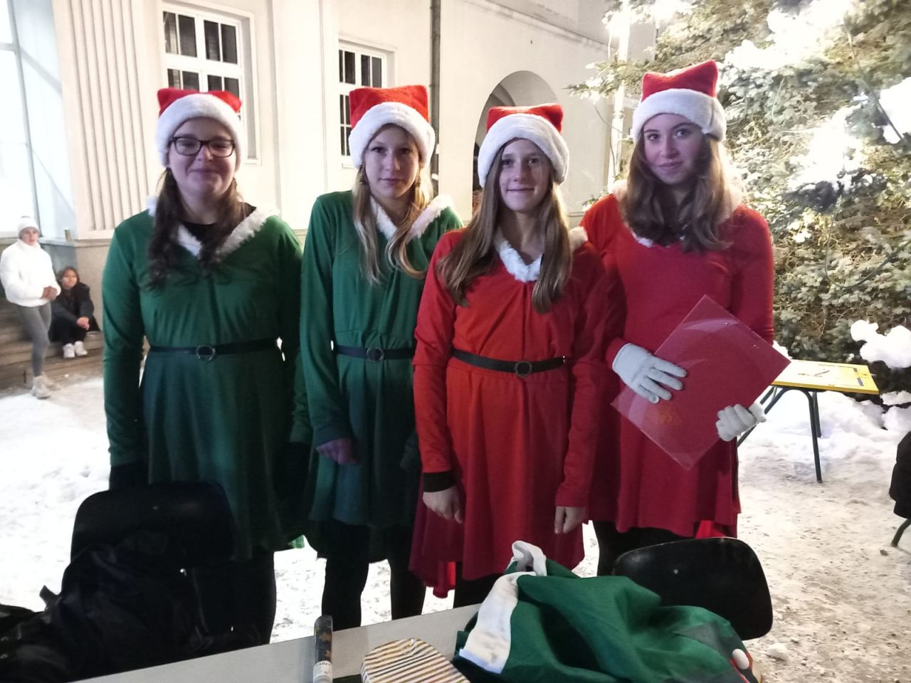 Die Spielsketches, ein weiteres Highlight des Abends, wurden von den talentierten Schülerinnen und Schülern unseres Schwerpunktes „Kommunikation und Kreativität“ mit viel Engagement und Kreativität präsentiert. Die humorvollen Darbietungen spiegelten nicht nur die schauspielerischen Fähigkeiten unserer Schüler wider, sondern zeigten auch, wie einfallsreich und vielseitig Weihnachten in den verschiedensten Familien gefeiert wird.