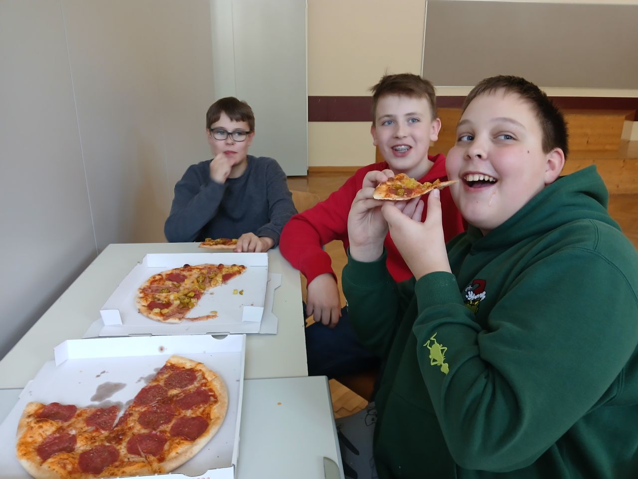 Selbstständig wurde in Teams zu alternativen Energien recherchiert und Zukunftsvisionen überlegt. Auch das Drehen der Videos und der Videoschnitt wurde von den Schülern übernommen. Viele kreative und informative Videos waren das Ergebnis. Anton, Matthias und Stefan aus der 3b wurden von den begleitenden Lehrpersonen als Siegerteam unserer Schule gekürt. Als Preis erhielten sie eine Pizza, die sie mit sichtlichem Genuss verspeist haben. Wir gratulieren nochmals herzlich! Die drei besten Videos wurden eingereicht und wir hoffen auch dort auf gute Ergebnisse.