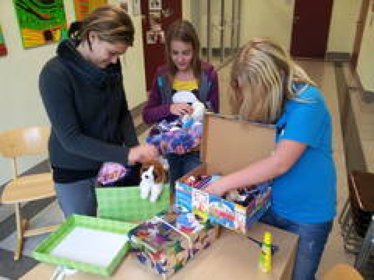 Die 2a und 2b beteiligen sich heuer an der Aktion „Weihnachten im Schuhkarton". Bedürftige Kinder in Bulgarien sollen einen schön verzierten Schuhkarton gefüllt mit Geschenken bekommen.