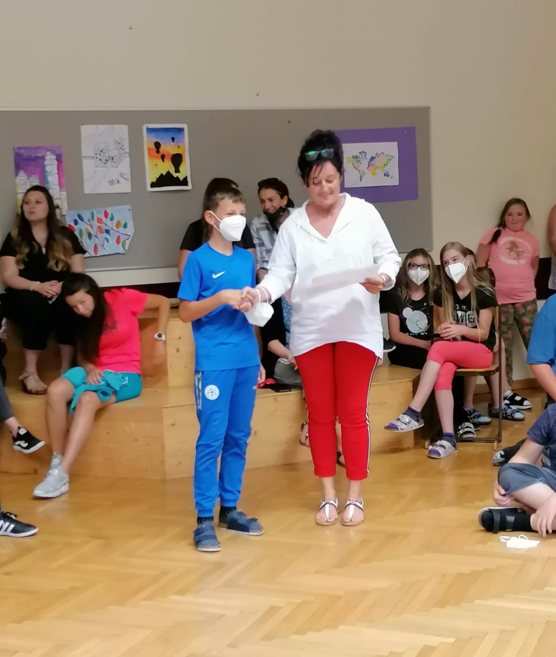 Unsere Schülerinnen und Schüler sammelten das Schuljahr über fleißig Bälle in ihren Soko-Röhren, belohnt wurden ua. herausragendes soziales Verhalten, guter Umgang und respektvolles Miteinander der Schülerinnen und Schüler. Es wurde gerätselt und die Spannung stieg, bis unsere Frau Direktorin Marion Reitterer die ersten 3 Plätze verkündete und die Gutscheine an die Klassensprecher übergab. Den 3. Platz ergatterte die 1b-Klasse und hat sich für ihre Leistung ein Eis verdient! Den 2. Platz schaffte die 3a-Klasse - als Preis erhielten sie ein Frühstück und anschließend einen Vormittag im Schwimmbad! Der verdiente 1. Platz, ein freier Schultag, wurde der 1a-Klasse überreicht. Die Begeisterung war groß und wir freuen uns auf die Weiterführung des SOKO im nächsten Schuljahr! Wir wünschen allen Schülerinnen, Schülern und Lehrpersonen erholsame Sommerferien!